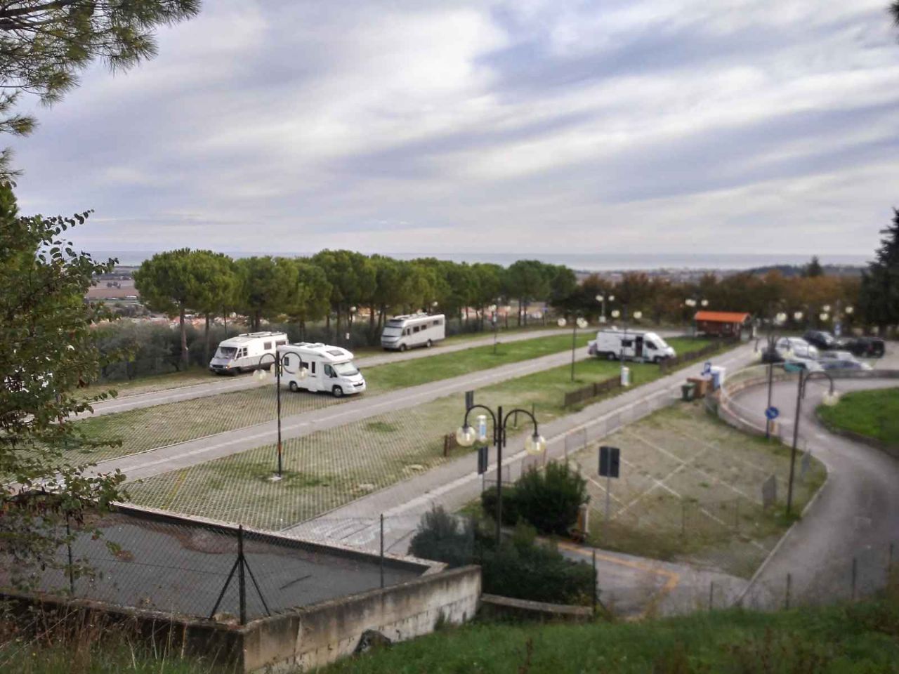 Ottima aria attrezzata per visitare Loreto (basilica a meno di 500 m) 6 km per Recanati città natale di Giacomo Leopardi. Ottimo rapporto qualità prezzo 19,00 euro a notte tutto compreso luce, carico scarico bagni docce lavapiatti. Consigliata.