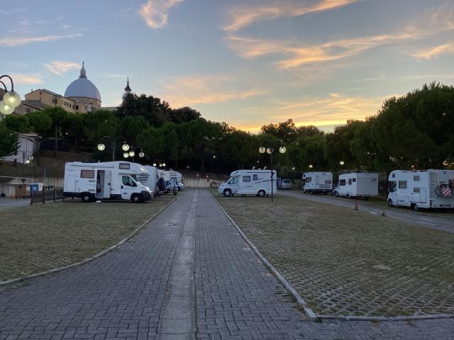 Area comoda per la basilica e il centro città (5 min a piedi), supermercato a 900mt (a piedi), bagni ok, doccia calda 1€, corrente negli stalli sui lati.Sempre acessibile, anche a tarda ora, ci si collega alla rete elettrica e si regolarizza il mattino. Manca solo un po' d'ombra!
