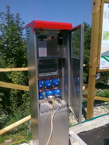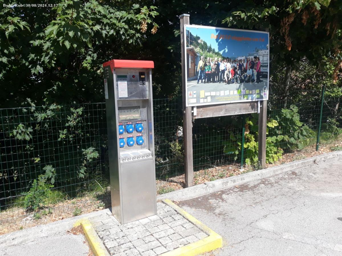 A 200 m dal centro, area comunale a pagamento, apertura sbarra manuale in entrata e uscita, illuminata, con 18 piazzole su asfalto e allacciamento elettrico a pagamento. Due bagni e due docce acqua calde divisi per genere, lavello per stoviglie, postazione carico/scarico, area picnic con tavolo e barbecue.