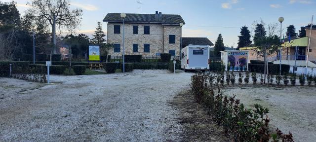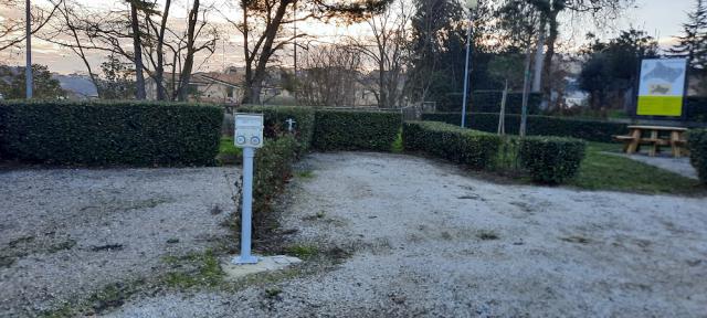 Presso il campo sportivo, area picnic e giochi bimbi, a 1 km dal centro storico, area sosta con 6 piazzole, ognuno con allaccio elettrico e rubinetto acqua, pozzetto, illuminazione, raccolta rifiuti.