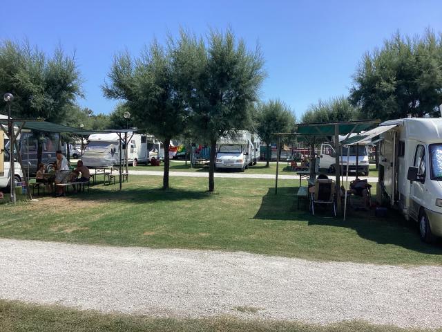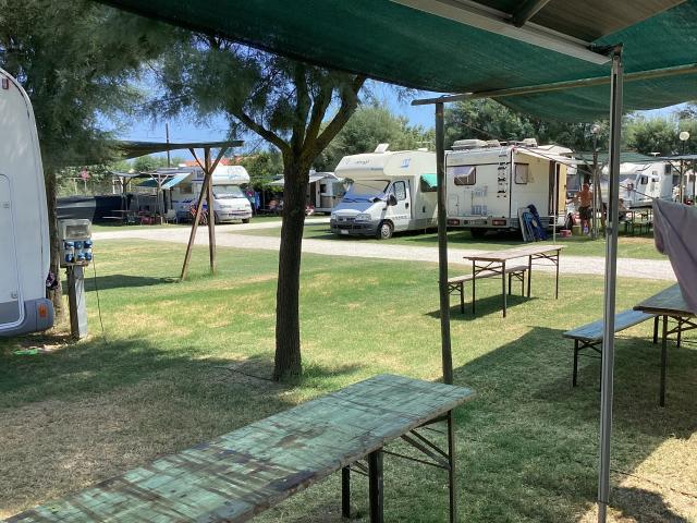 Piazzole strette: 50 cm dal camper accanto per poter aprire un metro di tendalino. Ci sono i tavoli ma in condivisione con la piazzola di fronte e in cattive condizioni. I servizi sono insufficienti e mal tenuti. Le docce a gettone sono tiepide e durano poco (no start stop). Se dovete fare la spesa, scordatevelo a meno che non abbiate un altro mezzo. Fattori positivi: ovviamente costa meno dei campeggi dei dintorni (ma la qualità è quella che è), è praticamente sul mare, non è così rumorosa come dicono e il personale non è così antipatico. Consiglio... da evitare in agosto!