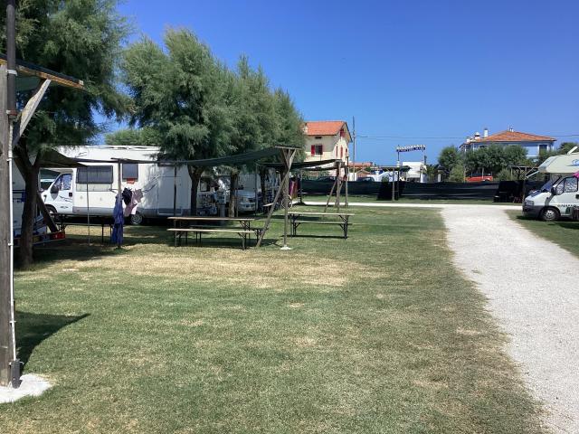 Sono stupefatto per il basso gradimento nelle recensioni di questa area. Per me è il massimo per un camperista che voglia fare una vacanza a 30 metri dal mare su piazzole in erba rasata, con tendalino stabile e panca posizionato al limite della piazzola stessa. I dintorni sono bellissimi, Porto Recanati, Numana, Sirolo facilmente raggiungibili in bici. Difetti? Il prezzo non è basso, 32 euro in agosto con corrente max 500 W. che salta appena sfori. Ma se pensi che pianti l'ombrellone in spiaggia libera e lo lasci lì anche di notte a non più di 50 metri dal camper, cosa vuoi di più? Anche lo scarico può dirsi scomodo, ma il tutto non ribalta il mio giudizio che è ottimo. Sulla simpatia del gestore che ha influenzato tante recensioni posso dire che è l'ultimo dei miei problemi se così fosse realmente.