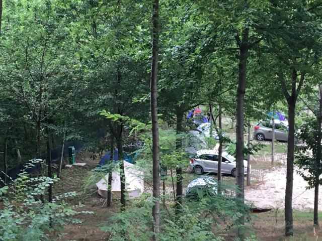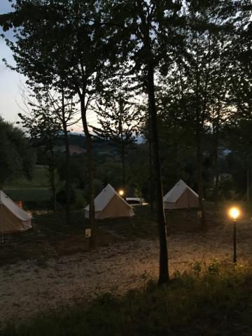 Agricampeggio ombreggiato con 16 piazzole dotate di allaccio elettrico 1kW, carico acqua e pozzetto per lo scarico di acque grigie e nere.