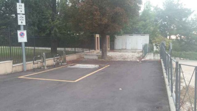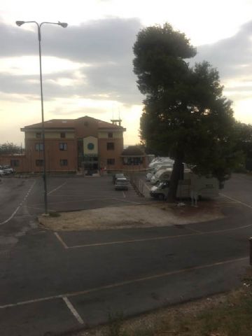 Trovato camper service, un po' scomodo: casetta dell’acqua 5 cent/litro. Poca ombra e una pizzeria a 600 metri per la cena. Posti in leggera pendenza, di fronte alla sede della protezione civile. Tranquilla la notte, non è possibile entrare o uscire il sabato dalle 6.00 alle 15.00 per la presenza del mercato.