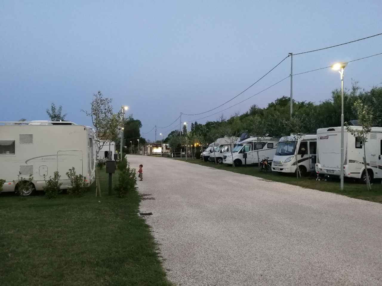 Area nuova, pulita e con piazzole gradi, fondo erboso. Gestore molto gentile e disponibile, nei dintorni ciclabile e accesso al mare, docce calde 50 cent (4minuti). Prezzi contenuto (12 euro ogni 12 ore). Servizi puliti ed efficienti, sicuramente io la consiglio!