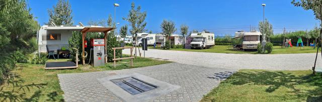 24/07/2021 - Area su manto erboso, curata con piazzole spaziose e curate. Elettricità, servizi igienici puliti, docce calde, lavelli per stoviglie e biancheria con acqua calda, questi ultimi costano 50 cent con 2 minuti scarsi di acqua. Carico acqua a pagamento. Gratuito per svuotamento WC e serbatoi camper. Personale gentile. Si accede alla spiaggia libera distante circa 300m tramite un sottopasso sulla statale e ferrovia, comodo e sicuro.