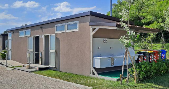 Area di sosta molto curata, nulla da dire. Servizi igienici perfetti oltre alla possibilità di entrata e uscita automatizzata. Se vogliamo trovare un neo, la statale ed il treno davanti danno un un po' di noia, ma in questa zona è così ovunque.