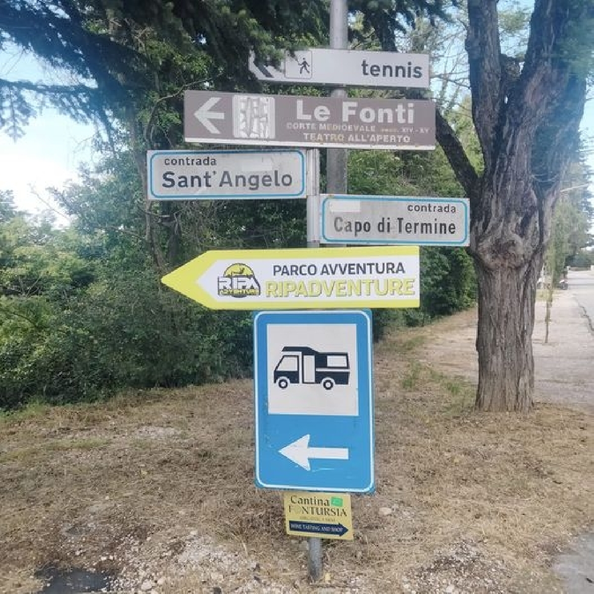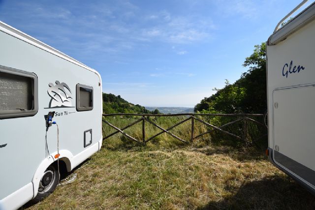 Poco distante dal teatro all'aperto Le Fonti e dal centro, area camper immersa nel verde, illuminata, recentemente rinnovata con nuova gestione giugno 2023. Sono presenti 30 posti camper, allaccio elettrico, servizi sanitari, scarico, area picnic attrezzata.