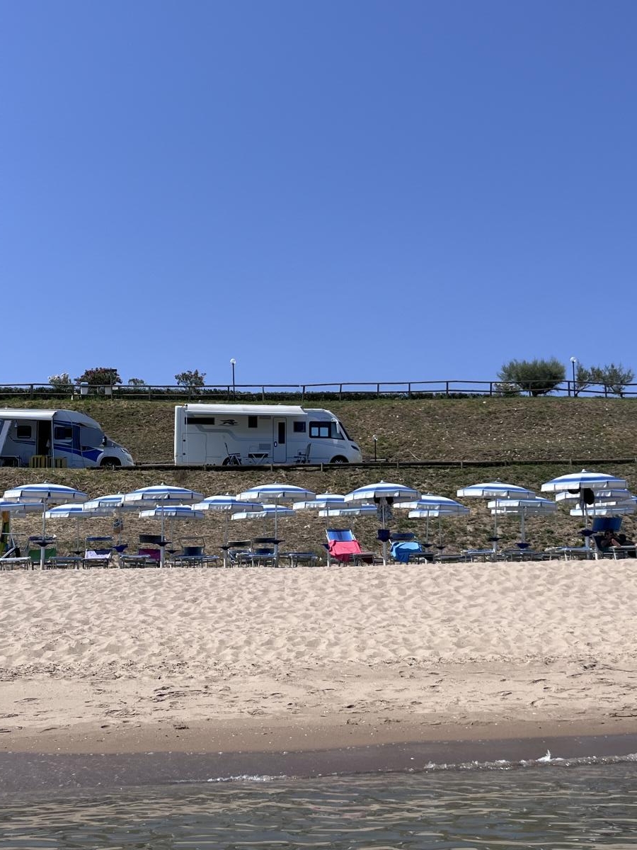 Parcheggiare fronte mare in AA non è abituale. I servizi andrebbero migliorati e aumentati. Il disturbo della ferrovia e della statale è trascurabile (la notte ho sentito molto di più le onde). La spiaggia chilometrica compensa il mare non eccelso.
