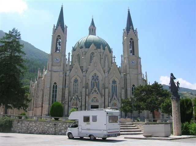 Sosta su tutto il piazzale del Santuario dell'Addolorata, molto tranquillo di notte, mentre di giorno specie nel fine settimana, dopo le sette di mattina, diventa rumoroso per l'arrivo dei pullman.