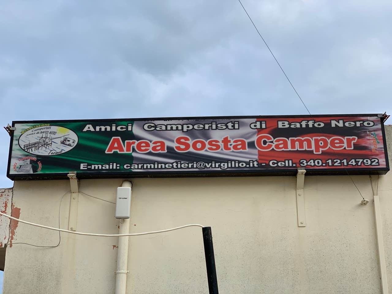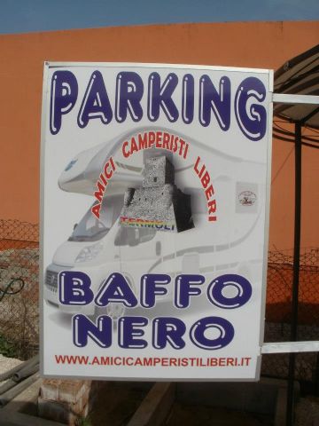 Per sostare ti iscrivono all'Associazione Amici camperisti di Baffo Nero. È possibile caricare acqua, svuotare la cassetta WC. No scarico grigie, No bagni, 1 solo lavello e 1 doccia aperta, fredda. Economica senza corrente (extra). La tariffa scatta dalle 12, a prescindere da orario arrivo. Tutti dicono grande accoglienza e cortesia...io lo avrò trovato in giornata storta!