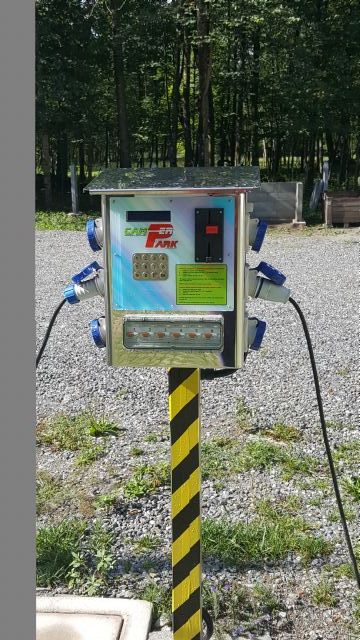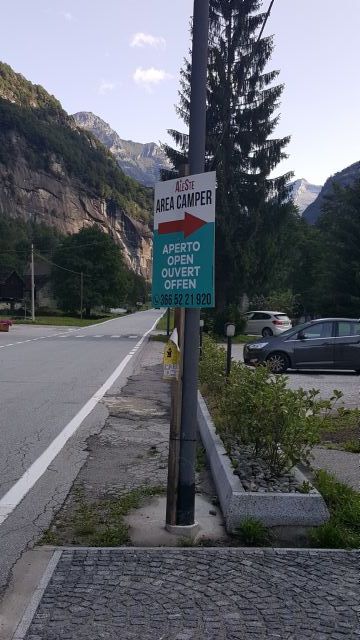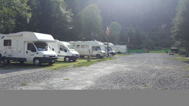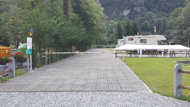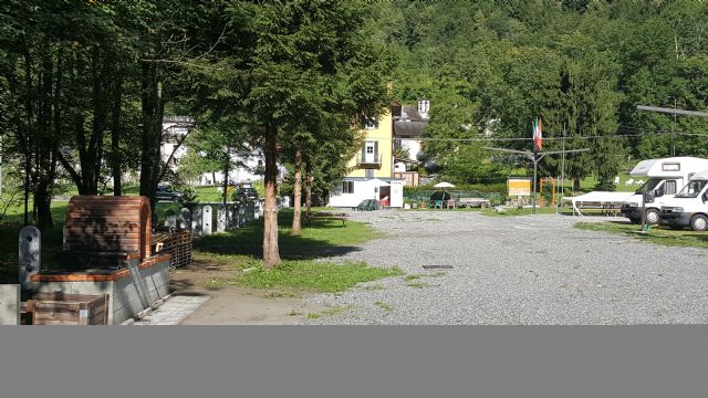 Nella Valle Antigorio e Formazza a pochi metri dalle Terme di Premia, area camper con sbarra d'accesso, 15 piazzole delimitate, su erbablock, carico acqua e scarico cassetta WC chimico, allaccio elettrico a consumo.