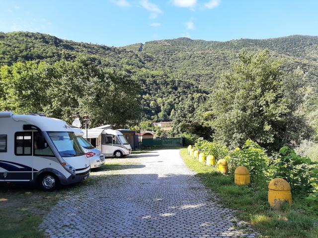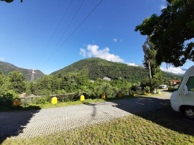 Area comunale sulla riva del torrente Cannobino, distante 300 m dal centro storico, con 55 posti camper, attacco elettrico, zona barbecue, servizi igienici e zona per lo scarico esterno all'area. Pagamento con parchimetro, accettate solo banconote.