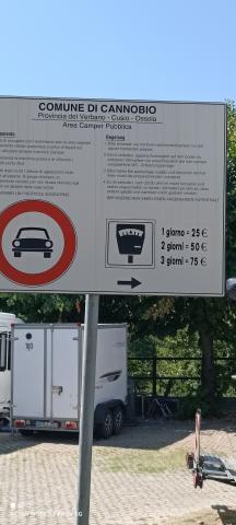 Abbastanza comoda al centro, sia in bici ma anche a piedi, tranquilla e silenziosa si affaccia sul torrente Cannobino. La sosta è a pagamento, si paga in anticipo per il periodo di permanenza, e si espone il biglietto a vista, il costo è di 16€ al giorno compreso di elettricità, la macchinetta non accetta le carte e non da resto, l’area di sosta è munita di bagni e di un’area di carico /scarico facilmente accessibile.
