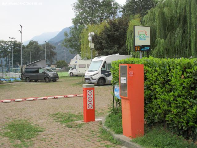 Sicuramente un'area gradevole come ubicazione peccato che già il venerdì sera di maggio era strapiena senza neanche 1 posto disponibile dopo mezzora di girovagare dentro Omegna per trovare la strada per l'area, molto mal segnalata.