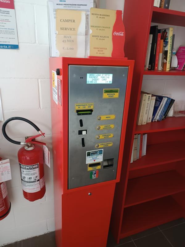 Posizione eccellente, ma gestione scadente. Entrata con ricevimento card, necessaria per tutti i servizi. Costo 14€ ogni 12 ore dalle ore 12 alle 24. Pagamento, no carta, ma solo 5, 10, 20 € in carta moneta, così non da resto né scontrino. La cassa automatica non da resto. Es. da pagare 56€ messo 20+20+20€ fregati 4€. Assistenza solo telefonica ma non sul posto. WiFi solo telefonini no per PC portatile.