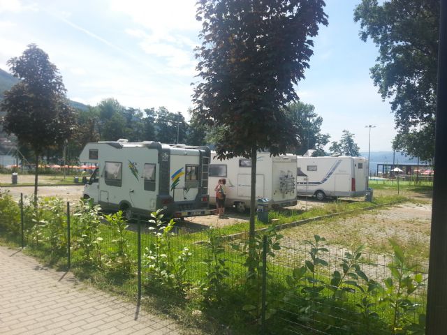 E' una buona area di sosta, non proprio vicina al centro, ma con una bella passeggiata lo si raggiunge. Purtroppo è mal segnalata ed è un po' complicato arrivarci. Comunque, è un bel posto sul lago.