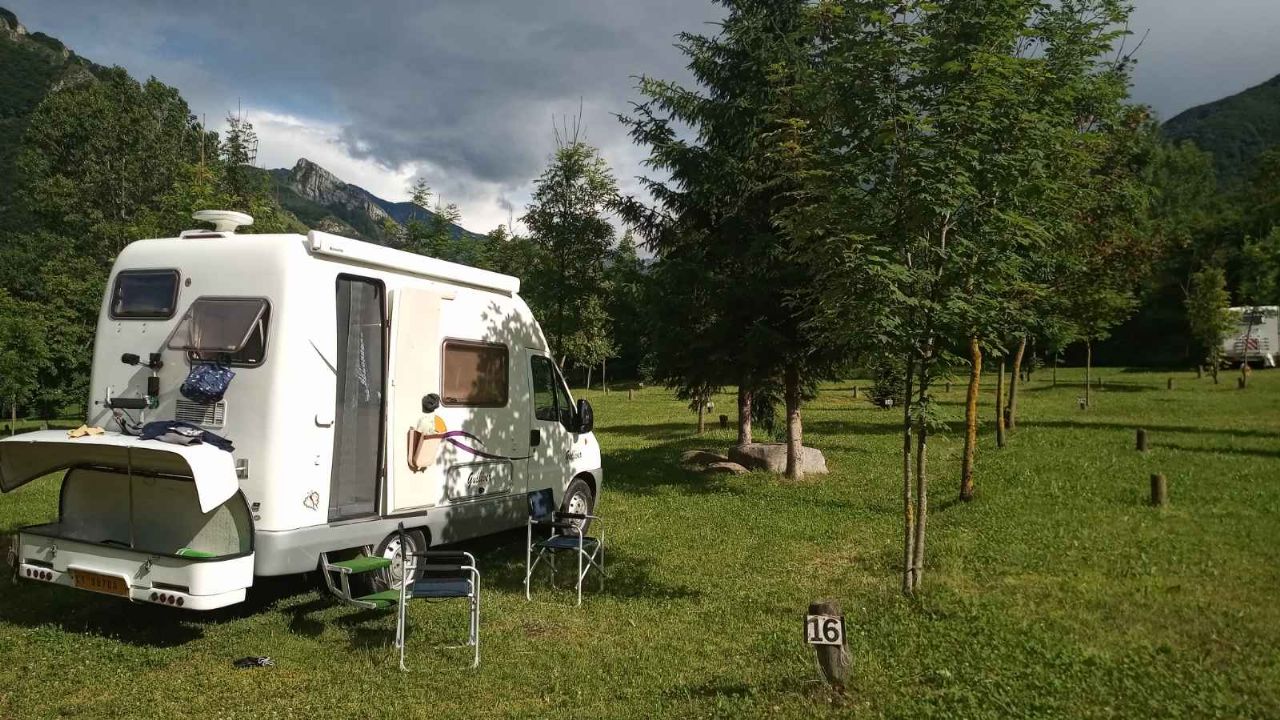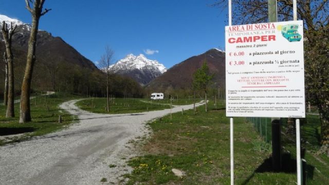 Oltrepassato il primo parcheggio per auto che si trova di fronte al ristorante e al laghetto, area camper presso ristorante/pizzeria 'Real Park', piazzole su erba, a pagamento.