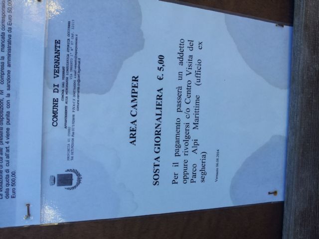 {"idArea":"1821","servizi":"1,2,3,4,8,15,18","posizioni":"1,2,6,11,13,16","numCommenti":"10","voto":"8.40","evidenza":"0000","lat":"44.243260","lng":"7.533690","cat":"1","nome":"Area+camper+Vernante","comune":"Vernante","provincia":"CN","indirizzo":"Piazza Vermenagna","cap":"12019","descrizione":"Paesino con murales sulla favola di Pinocchio, area sosta a pagamento (bonifico o in comune) nei pressi dell'area verde oltre il torrente con 17 ampi stalli per camper (apertura tendalino), allaccio elettrico e area camper service. ","tariffa":"\u20ac10\/24h","apertura":"","phone":"","phone2":"","phone3":"","dintorni":""}