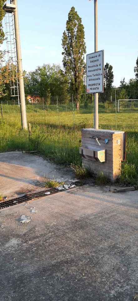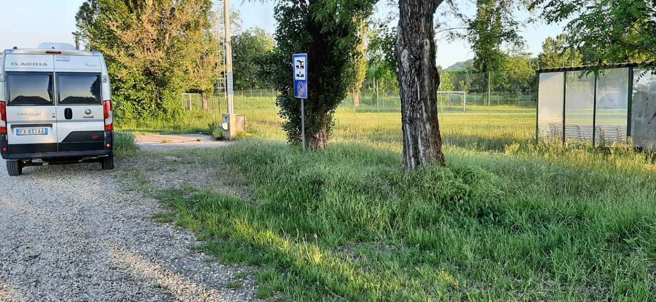 Punto sosta c/o impianti sportivi, 6 posti su sterrato con acqua ed elettricità, sempre aperta.