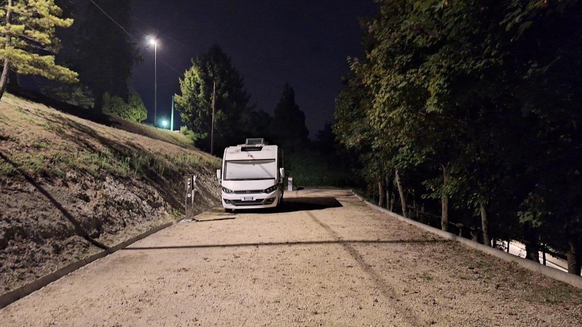 Nei pressi dell'abitato e vicino al Cimitero, punto sosta camper con 6 posti su fondo in ghiaia, parzialmente ombreggiato, con allacciamento elettrico a pagamento e zona carico/scarico acque.