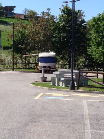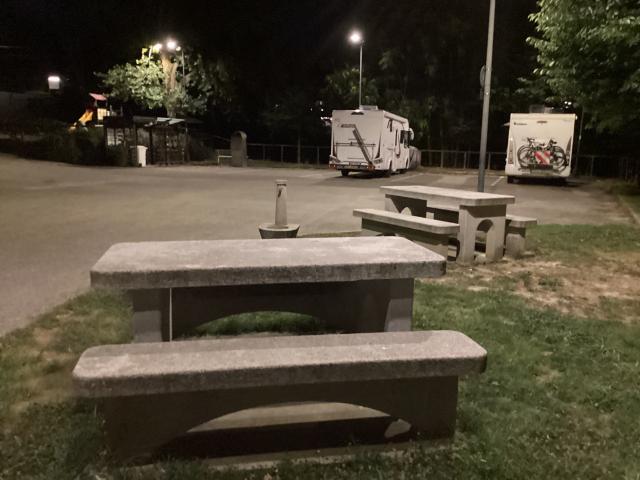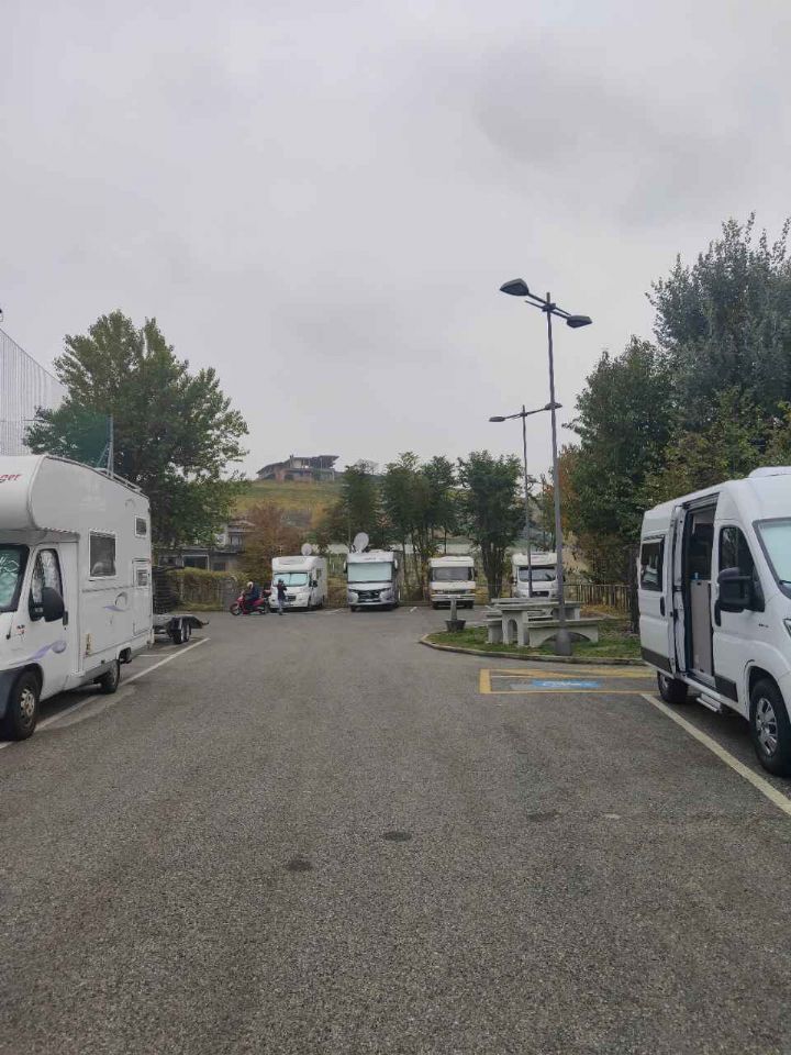 A 200 m circa dal centro, area comunale pianeggiante, su blocchetti in porfido, camper service a colonnina con sportello per lo scarico delle cassette WC, acqua potabile da fontanella.