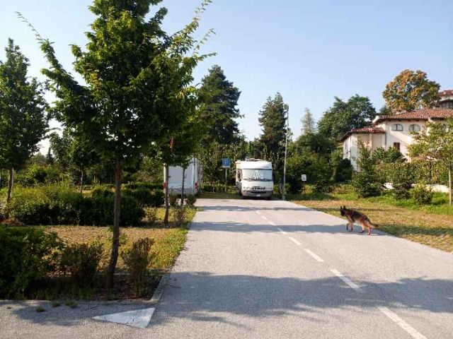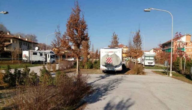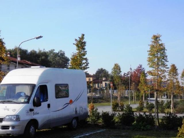 Vicina al centro storico e pista ciclabile, area comunale attrezzata, videosorvegliata, con circa una ventina di piazzole, delimitate da cespugli e 12 attacchi per la corrente elettrica. All'ingresso del posteggio, una colonnina distributore per il carico dell'acqua, vicino al sistema per lo scarico di acque grigie e cassetta WC chimico.