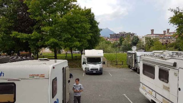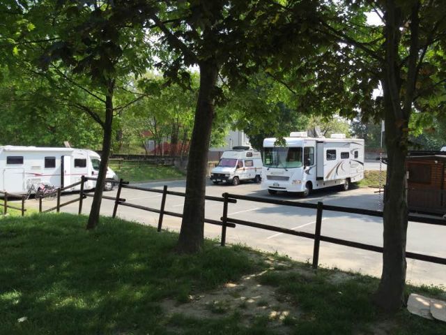 A meno di 1 km dal centro (raggiungibile con comoda passerella sul fiume), adiacente allo Stadio della Canoa e alla Croce Rossa, area sosta nel verde con 10 posti, recintata, in piano, su sfondo asfaltato.