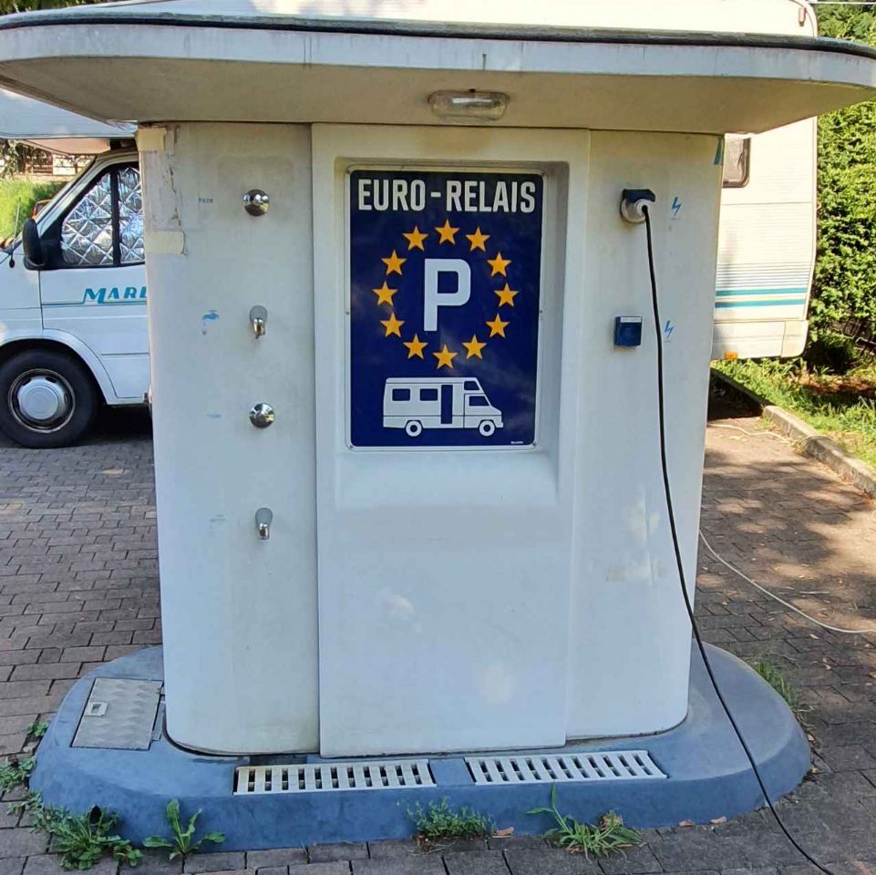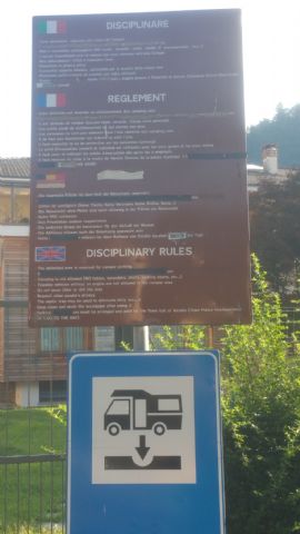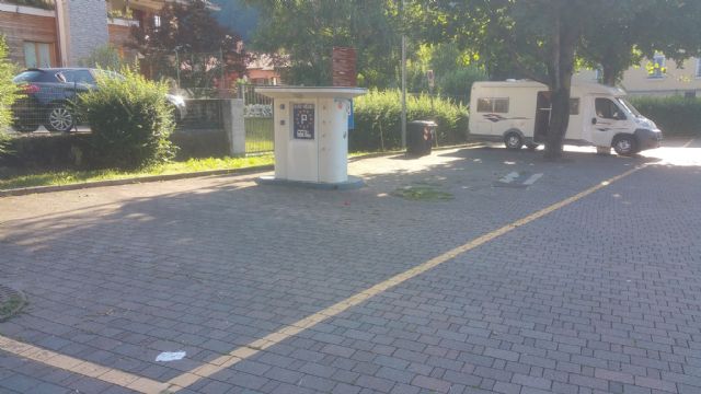 Parcheggio di facile accesso, pulito e in gran parte ombreggiato, con colonnina per scarico, carico e 4 allacci per corrente elettrica tutto funzionante; se dovesse mancare la corrente, rivolgersi alla Polizia locale perché il numero stampato sulla colonnina risulta inesistente e, nel nostro caso, i vigili sono usciti a ripristinare.