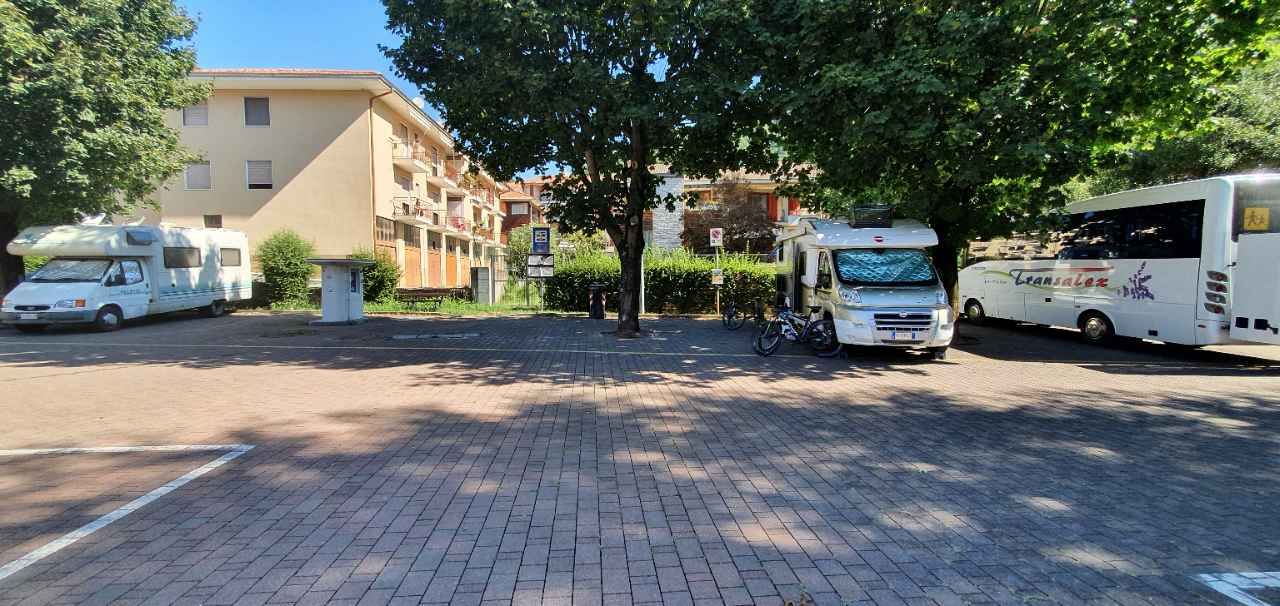 Area vicino al centro storico di Varallo e al sacro monte, composta di circa 6-7 stalli per camper su autobloccanti con camper service a pagamento (bisogna chiamare i vigili). Abbastanza tranquilla e ombreggiata.