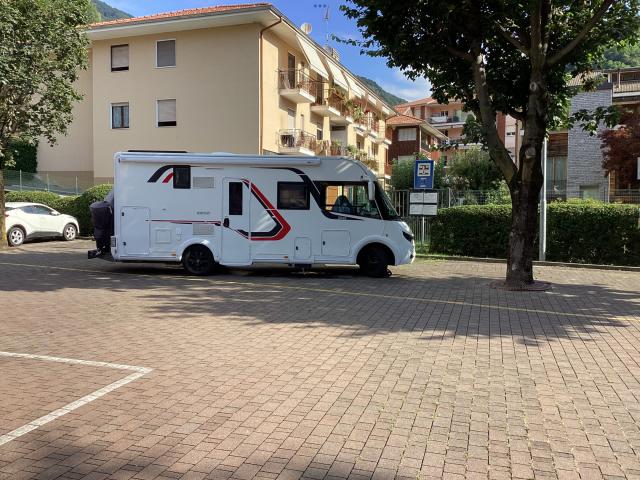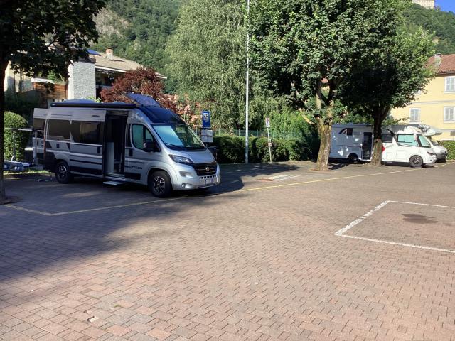 L'area dedicata ai camper è troppo in pendenza, è possibile sostare nella grande Piazza adiacente completamente gratuita, vi sono posti con possibilità di lasciare la parte posteriore nell'aiuola con mezzi fino a 6,50 metri. Il centro è molto comodo e caratteristico a 200 metri. Facile anche l'accesso alla funicolare e alla salita al Sacro Monte 500 metri.