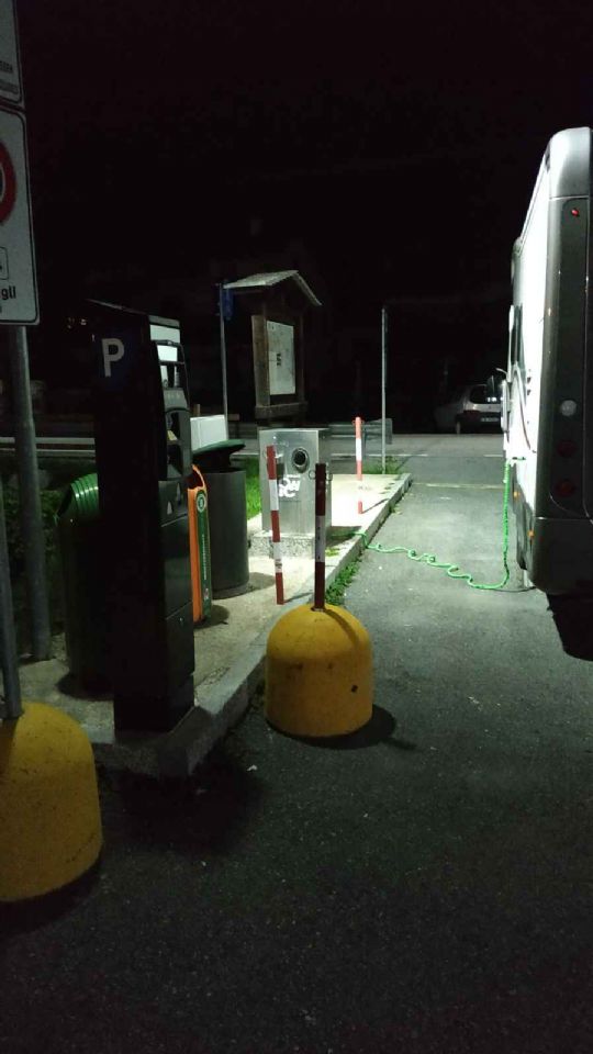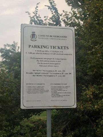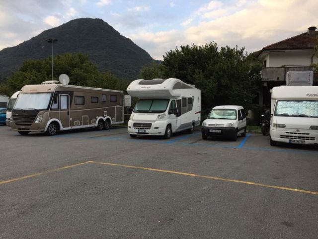 Vicina al centro e al lago di Maggiore, area comunale illuminata, non ombreggiata, a pagamento con parchimetro (accettate carte e monete), con 10 stalli camper su asfalto, elettricità solo per 4 posti.