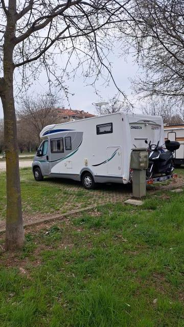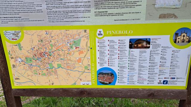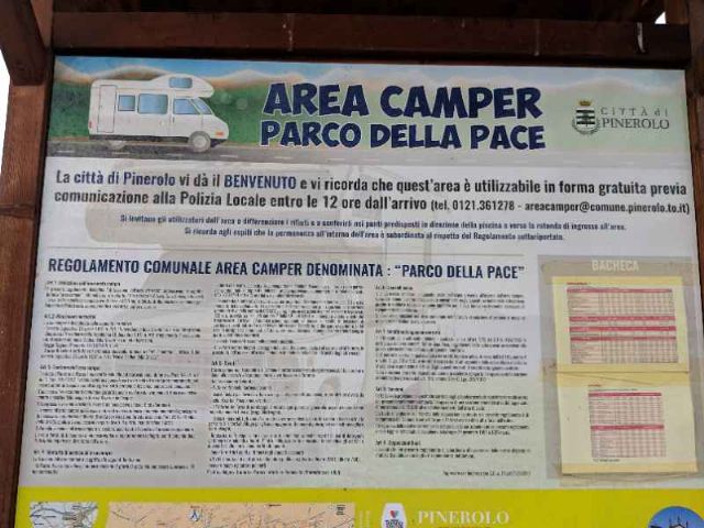 All'interno del complesso sportivo del Parco Olimpico ai piedi della collina Pinerolese, area sosta camper illuminata e video sorvegliata con camper service e carico acqua. Sosta max consentita 120 ore.