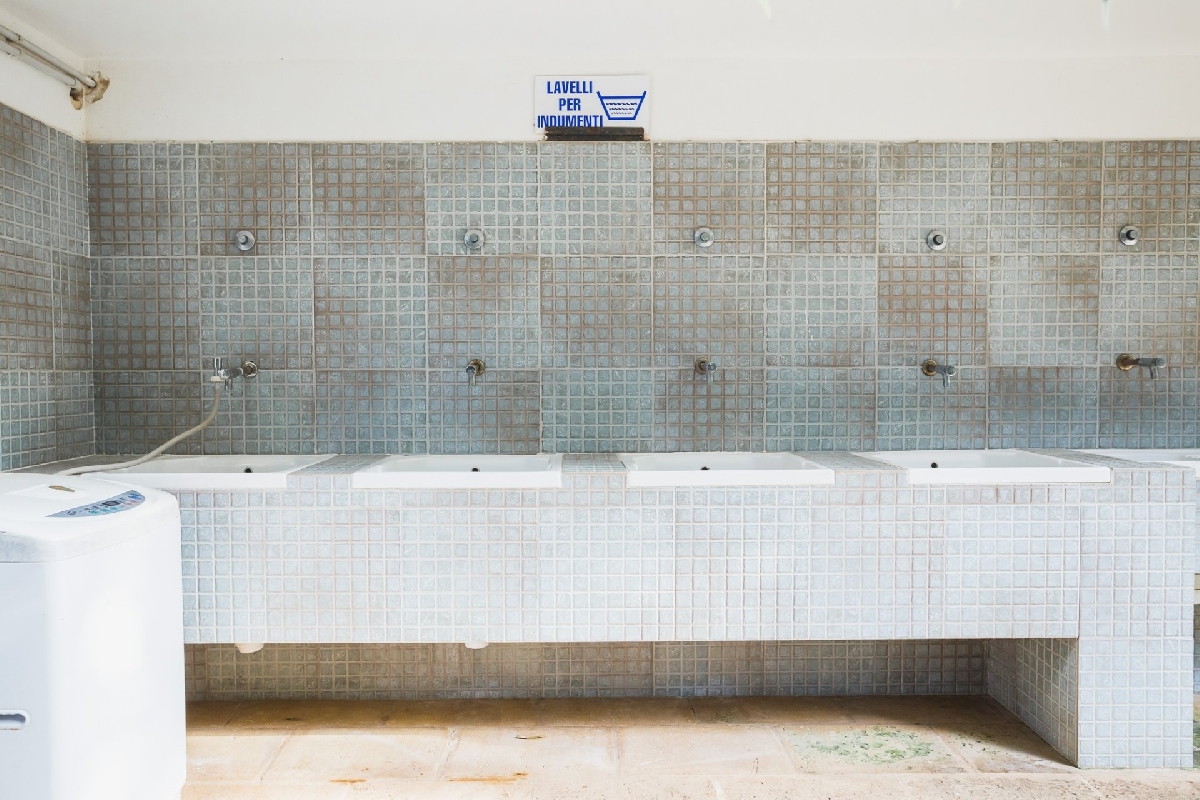Servizio di carico e scarico acque grigie e nere (chimico e nautico), servizi igienici con docce calde a gettone, area lavaggio stoviglie e indumenti, lavatrice a gettone.
