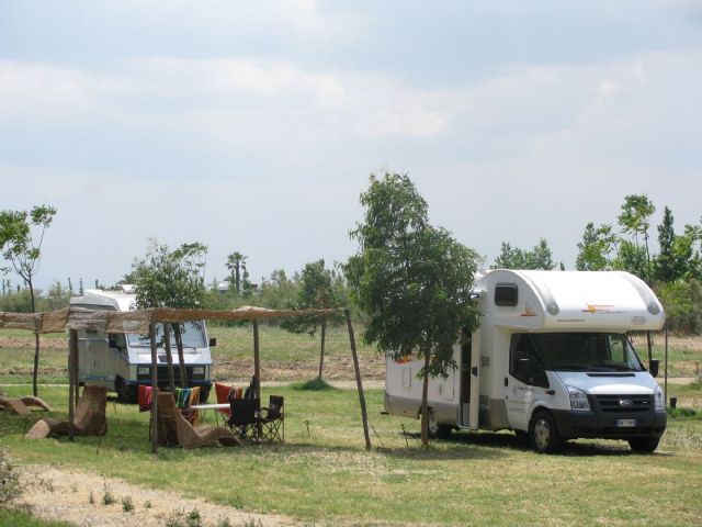 Bella esperienza in questo paesaggio incantevole, pineta attrezzata per bimbi e adulti, laguna con torre di avvistamento e grande spiaggia con accesso. Servizi essenziali ma puliti e ordinati. Carico acqua potabile ogni 3 notti gratuito meno € 2.50. Corrente non regge il condizionatore. Due blocchi docce uno recente uno di legno vecchiotto. Lavatoi e docce libere acqua di pozzo non potabile. Paese comodo con la bici. Proprietari gentili.