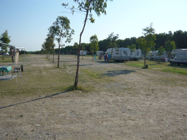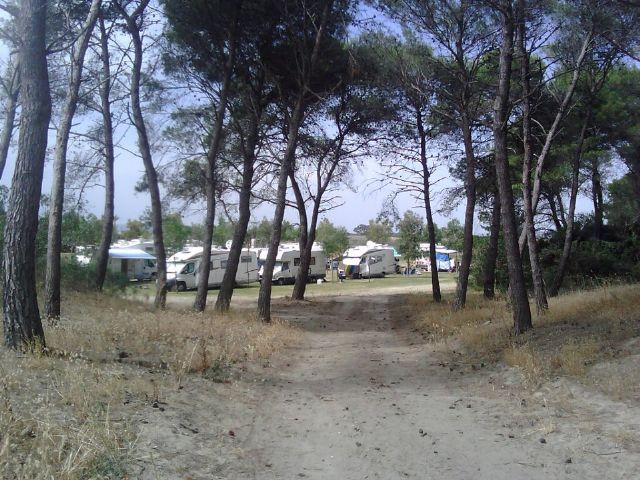 Area sosta molto spartana, con servizi essenziali. Piazzole ampie. Spiaggia molto grande e tranquilla anche ad agosto, che si raggiunge con una passeggiata di 5 minuti attraverso la pineta. Docce a pagamento a 1 euro (2 minuti con contasecondi). A 2 km dal centro, dove vi sono tutti i servizi. Carico-scarico gratuito dopo 3 notti. Ad agosto costo di 20 euro a notte.