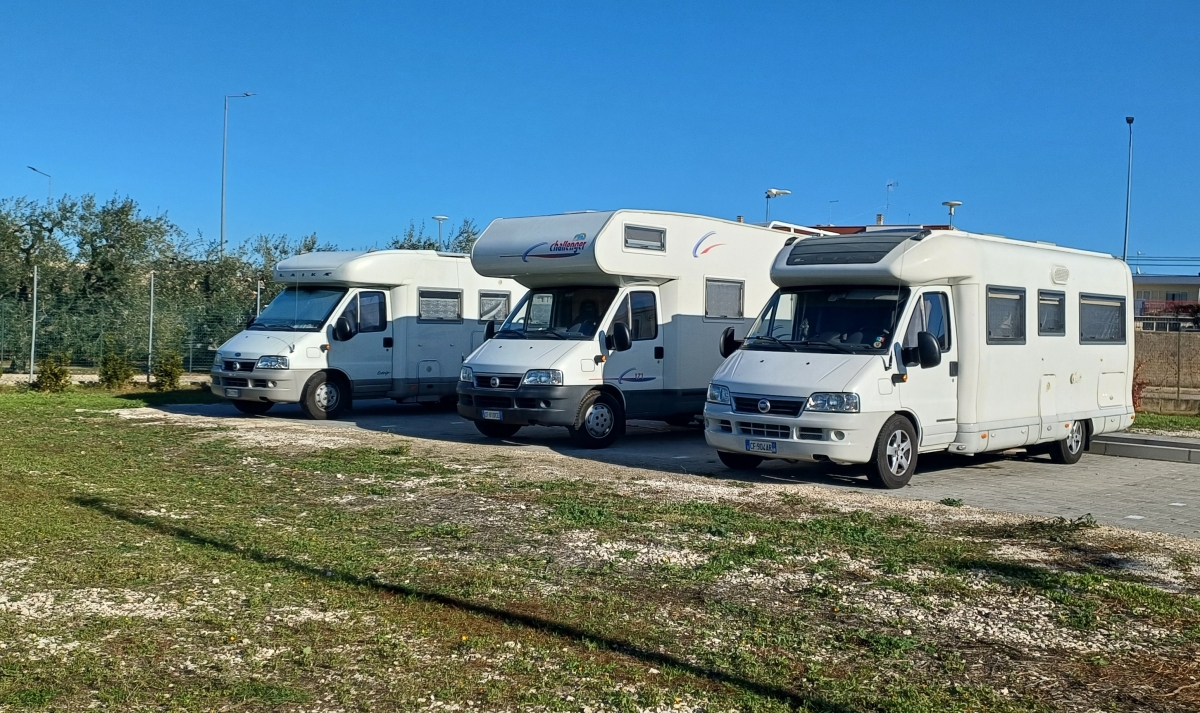 A circa 2 km dal centro e a 2,6 km dal mare, area attrezzata e videosorvegliata, recintata e illuminata, con piazzole camper da 5x6 m, su asfalto, colonnine per l'allaccio elettrico 6A, carico acqua potabile, scarico acque reflue, servizi igienici e docce (presso centro sportivo), punto ristoro, wifi. A poca distanza pista ciclabile che collega diverse località e a circa 1 km stazione FS di Bisceglie per raggiungere Trani, Barletta, Bari e provincia.