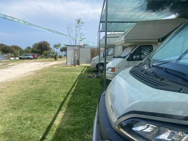 Area sul mare e con accesso diretto alla spiaggia, molto comodo. Praticamente tutte le piazzole in piano, ombreggiate e ampie. Docce a gettone (1€ x 2,5min). Gestore cordiale, ci anche ha fornito ottimi suggerimenti per la vacanza e su dove poter noleggiare e-bike e dove fare escursioni. Bar sempre aperto e nel weekend piccola ristorazione. Infatti, il sabato e la domenica la spiaggia si riempie e passa molta gente dal parcheggio e dall’area, ma durante la settimana regna la pace e il relax. Tutti i servizi essenziali funzionanti e comodo il fatto che la tariffa è per 24h. Quindi, si può restare fino all’orario dei giorni successivi potendo godere del mare almeno la mattina successiva. A luglio 28€ +tassa di soggiorno (equipaggi fino a 4 persone). Bus navetta con fermata proprio all’uscita dell’area molto comodo. Comunque il centro dista circa 1,5 km.