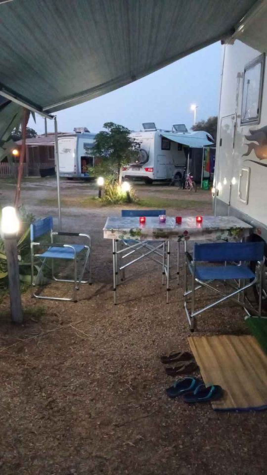Se respiri paghi! 27 euro la piazzola, da 3 a 6 euro elettricità, 0,50 doccia fredda, 1 euro doccia calda, piscina grande come un ditale a 3 euro/persona per 30 minuti. Non puoi: stendere la stuoia, devi comprare da loro il raccordo per fare acqua, si carica e scarica acque e WC dalle 7:00 alle 8:00 e dalle 9.45 alle 12:00, poi dalle 16:00. Il mare dalla parte rocciosa è vicino, stupendo ma non per tutte le età arrampicarsi, dalla parte sabbiosa devi camminare almeno 3 km. Unica nota positiva c'è la navetta del comune che ti porta nelle varie spiagge. Fatto 1 notte e … addio!!