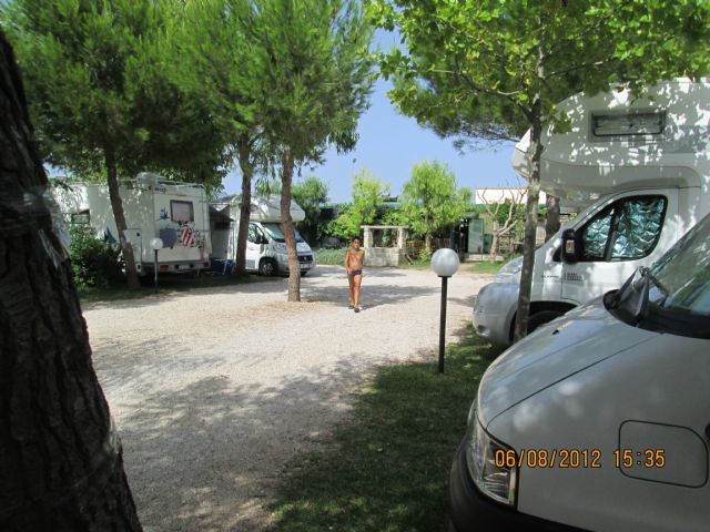 Troppo cara per i servizi offerti! Lontana dal mare e dal centro. Docce piccole e al buio, motivo per il quale la doccia si è mangiata un gettone (non rimborsato) e mi è pure caduto l'accappatoio. Per lavarlo chiedevano 4,5 euro. Sosta dalle 18.00 alle 10.00: € 25 e €1 doccia calda 14 litri/gettone. Piazzole strette e piccole (si poteva aprire solo mezzo tendalino) e a terra è vietato stendere qualunque tipo di stuoia. Carico/scarico a orario limitato, e quello dalle 22 alle 24, sebbene scritto, non si può fare perché disturba chi dorme. Check out entro le 10.30 poi 2 euro/ora fino alle 13. Poi scatta la giornata intera 25 euro. Sconsigliata.