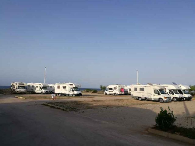 Parcheggio pianeggiante, illuminato, senza servizi, nei pressi della Torre Colimena parte ovest. A 100m dalla spiaggia, confinante con la salina dei Monaci e la spiaggia dell'area protetta.