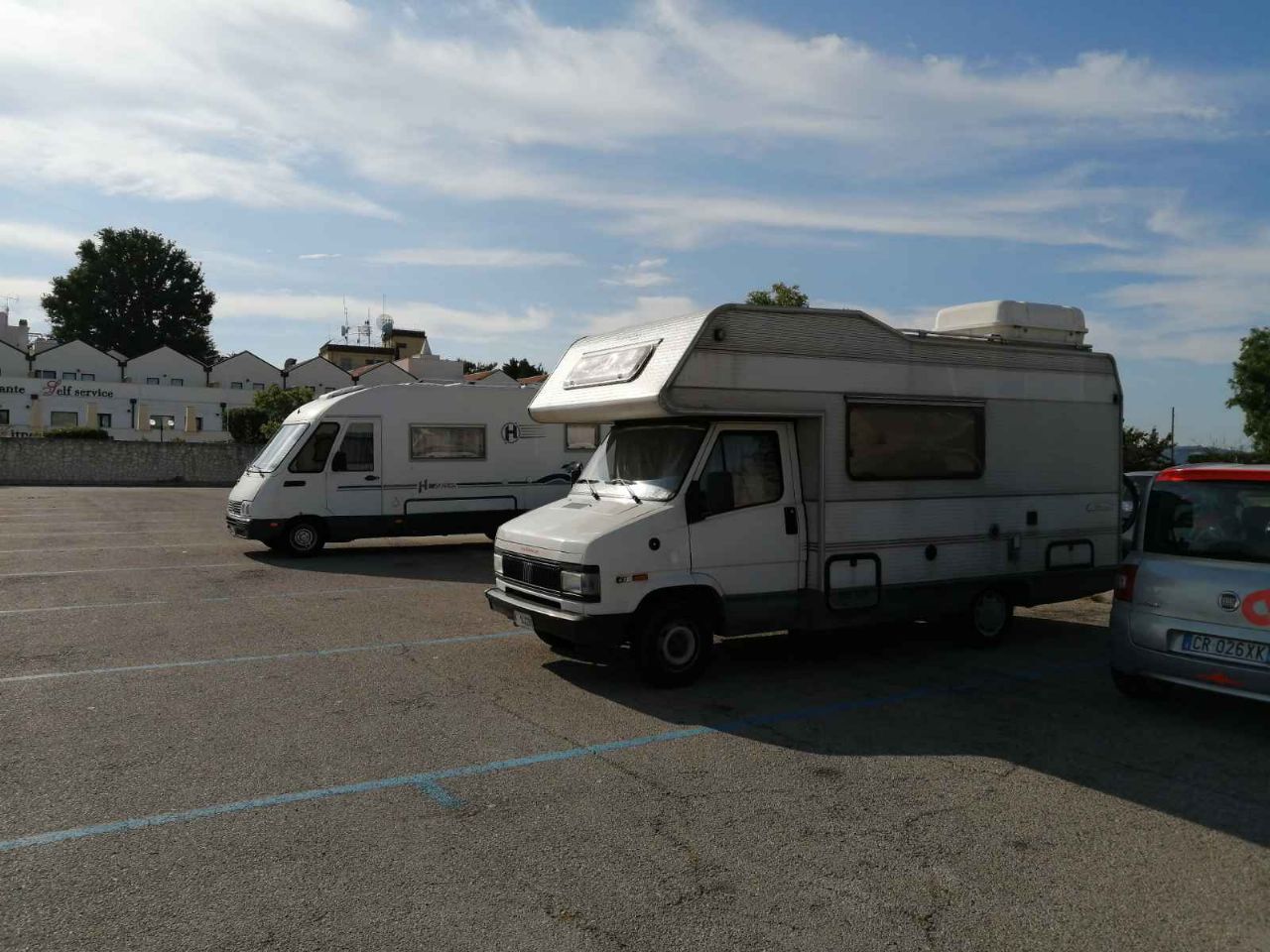 A 800 m dal centro, punto sosta sotto le mura del Castello Normanno Svevo Aragonese e vicino al Santuario, a pagamento misto con auto, accesso automatizzato, custodito solo di giorno, nessun servizio.