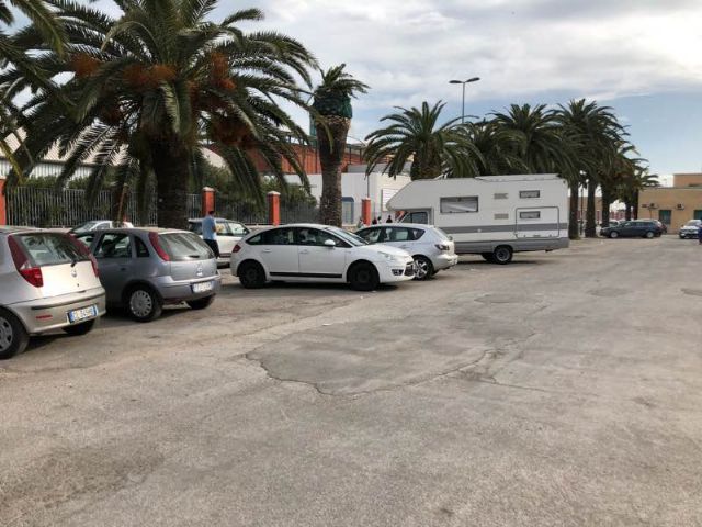 Punto sosta presso parcheggio all'ingresso del porto (in alternativa parking c/o Tribunale: un po' isolato ma caotico), vista mare.