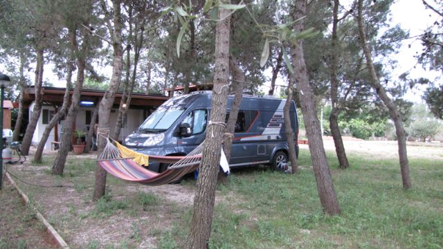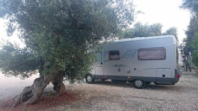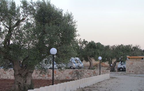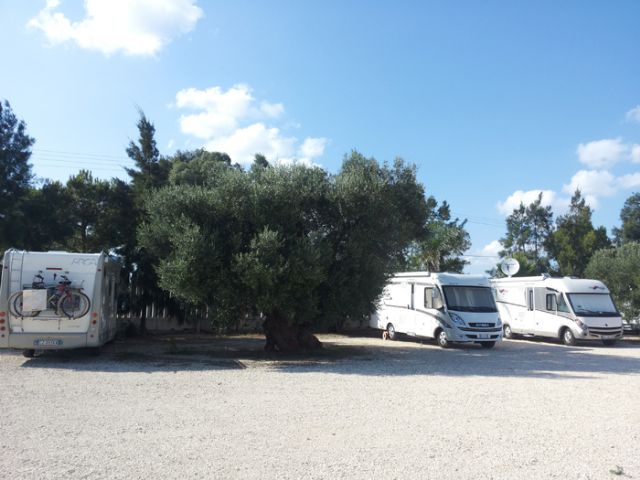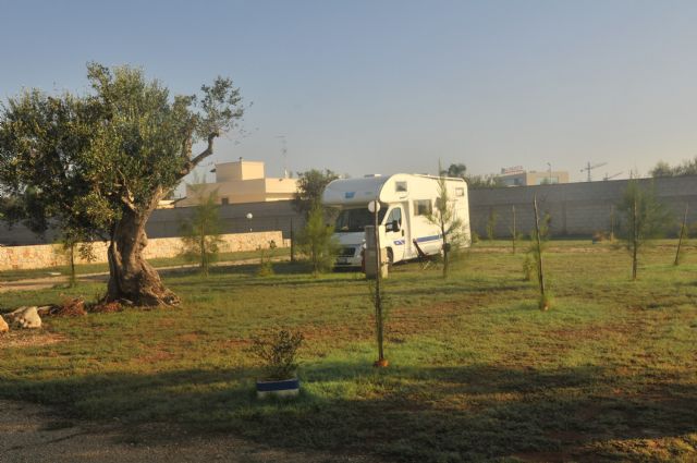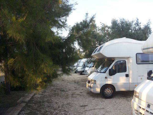 A 8 km da Lecce, attigua alla concessionaria e assistenza tecnica, area camper nel verde, illuminata, recintata, con ingresso controllato da cancello scorrevole, circa 30 piazzole.