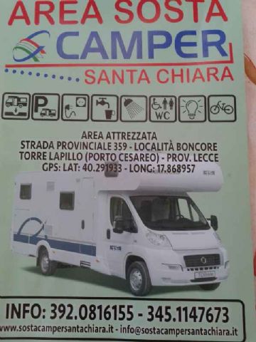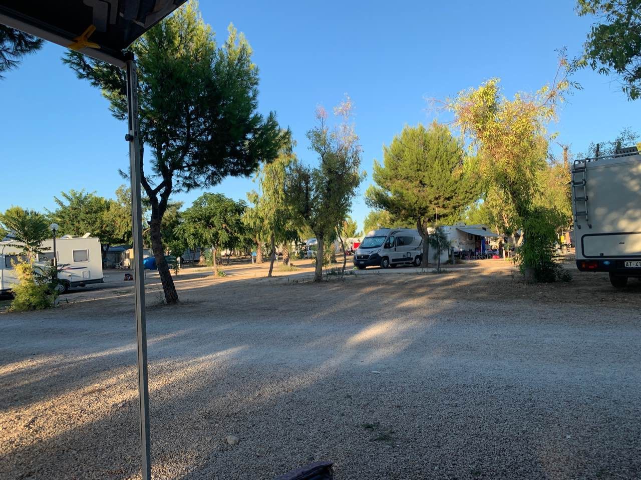 A circa 400 m dalle spiagge e dal centro, area con circa 300 piazzole, alcune ombreggiate, allaccio elettrico, carico/scarico, servizi igienici e docce calde, lavatrici.