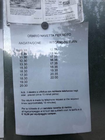 Gentilezza e cortesia, area sosta a due passi dal centro, servito con navetta gratuita.Magari un po' spartana, ma consigliata per visitare Noto e, se automuniti o con scooter, comodissima anche per tutte le località di mare, da Fontane Bianche a Porto Palo di Capo Passero.