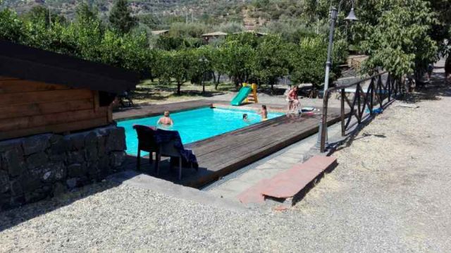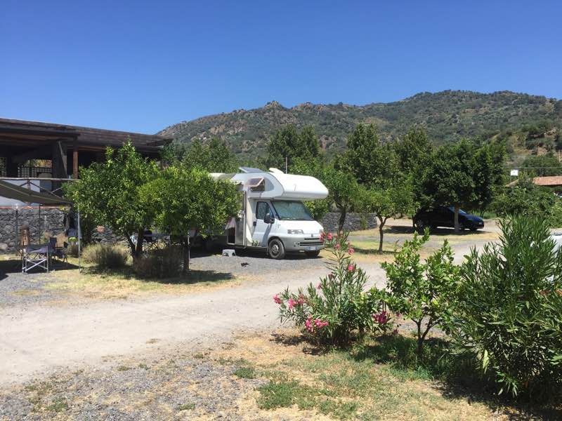 L'azienda orticola e frutticola, adiacente al Parco delle Gole Alcantara, dispone di piazzole camper su fondo drenante con allacciamento elettrico, camper service e servizi sanitari con docce calde.