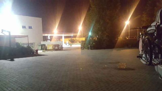 Praticamente un cortile dietro un distributore. Prezzo alto 25€/notte per camper e 2 persone. Elettricità max 700W: o accendi il condizionatore o il frigo. L'impiegato del bar dice che prendere o lasciare. Da starci solo in casi estremi.