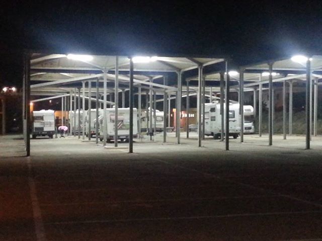 L'area attrezzata dispone di 50 posti su asfalto, servizi igienici e docce, carico/scarico e padiglioni con illuminazione notturna.