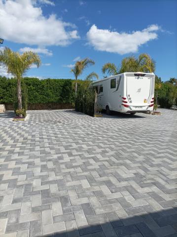 Ottima area di sosta con tutti i comfort. Perfettamente pavimentata, piana, a circa 5 km da Ortigia, il proprietario offre servizio navetta ad un prezzo veramente onesto, costo complessivo molto buono, servizi sufficenti. Per il momento c'è poca ombra. le palme devono crescere.